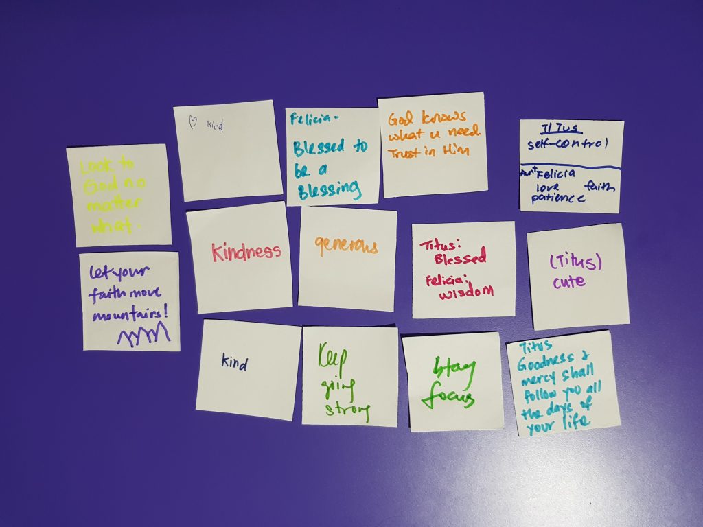 As I didn’t know about the game intention initially so I just wrote Titus name on it. After realising what is the game all about, I put my name below in bracelet as obviously not everyone will know how to write or describe about Titus. What struck me is what they wrote about Titus – Blessed. Indeed he is the blessed child to be with bringing us lot of fun and laughter. Not to mention, a lot of sleepless nights, anxiety attacks too. We have our fair shares of ups and downs where we did some parts right and some parts wrong. Glad to say it is ok, we can always start afresh as tomorrow is a new day to look forward to and try again. Isn’t that what parenting is all about?