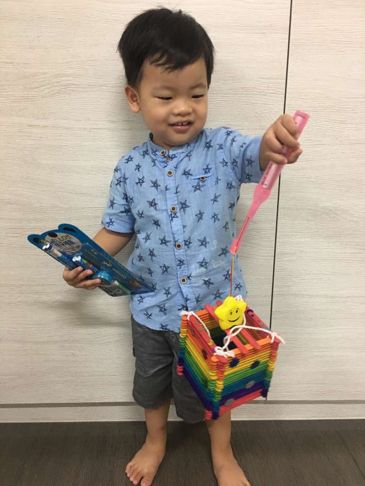 So now the trick is how to stick the lighting with handle to it and that it will hold well. Finally the day came and he went out with the lantern for a walk around the childcare area. I was glad that he enjoyed it and to our surprise, we won second prize! Well, it is the experience that he get to enjoy and with his friends that make it all worth while.
